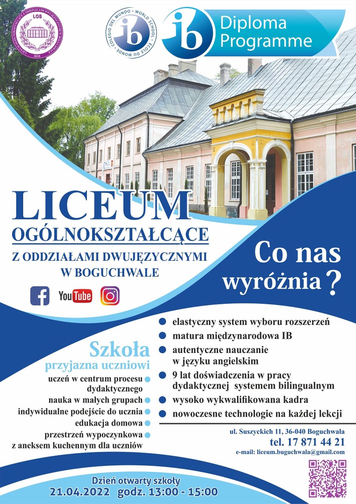 Liceum Ogólnokształcące z Oddziałami Dwujęzycznymi w Boguchwale wkrótce rozpocznie proces rekrutacji uczniów na rok szkolny 2022/2023.