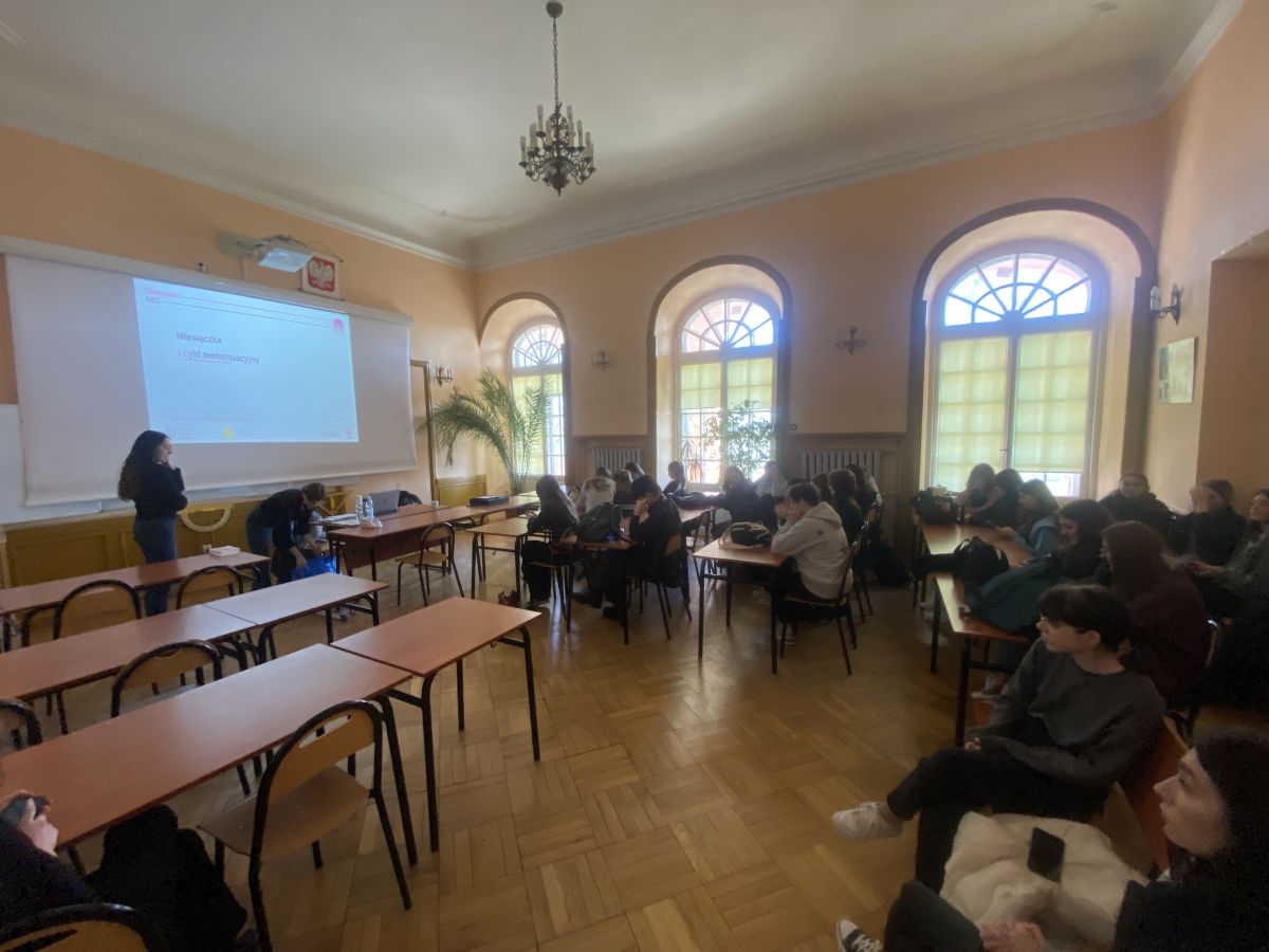 W naszej szkole odbyły się warsztaty edukacyjne dotyczące menstruacji, organizowane w ramach programu „Okresowe ABC”, prowadzonego przez Fundację Kulczyk. Celem zajęć było zwiększenie świadomości na temat miesiączki, przełamywanie tabu oraz dostarczenie rzetelnych informacji zarówno uczniom, jak i uczennicom.